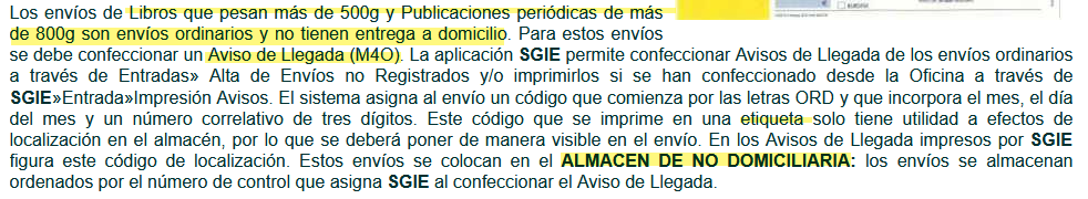 > Más de 800 g hasta 2 kg: Aviso de Llegada M4-O en buzón y recogida en oficina. Ahora bien, nunca se ahonda más allá de esto. Siempre se termina el concepto en la recogida por parte del destinatario y punto.